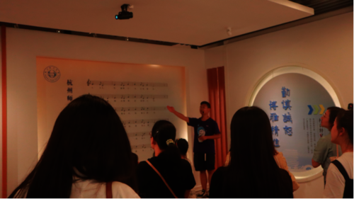 会后,校友们集体参观了下沙校区育华厅。翻译211班袁铭欣同学经过暑期学校线上培训,为学姐们讲解学校发展历史沿革、发展脉络及办学成就等。在校歌墙前,校友们情不自禁地集体哼唱起来,对母校的深情厚谊令人动容。大家饱含深情地说:“回到校园就是开心,是别的地方找不到的快乐。”校友们表示,看到学校取得的发展和成就,由衷地感到骄傲和自豪,希望母校越办越好,母校的明天更加灿烂辉煌。